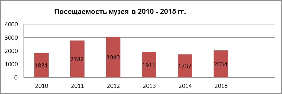 A total of 2,034 people visited the museum in 2015. This includes 67.2% of Ukrainian citizens (1,367 persons) and 32.8% of citizens of other countries (667 persons). The number of visitors grew from 2014. General dynamics of museum attendance over the last five years looks the following:
