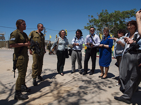 .jpg) Next, the journalists took a trip to the Kissufim military base bordering the Gaza sector. The Head of the IDF Informational Service Department for Russian-language Media Anna Ukolova spoke to the journalists about the everyday life in the IDF. The journalists met soldiers and officers, tasted the food soldiers eat daily, and were shown new types of weapons. Representatives of the IDF gave an extensive report about the military confrontation with Palestinian terrorists.