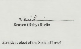 Reuven Rivlin, the new President of the State of Israel, sent to Julius Meinl, the President of the Euro-Asian Jewish Congress, a letter of thanks for the congratulations on his election.